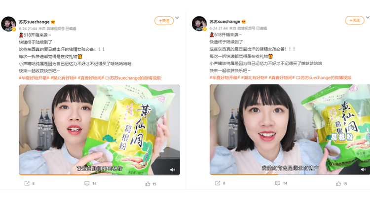 ▲微博大(da)咖博主(zhu)發(fa)微博,力推黃仙洞葛根粉(fen)
